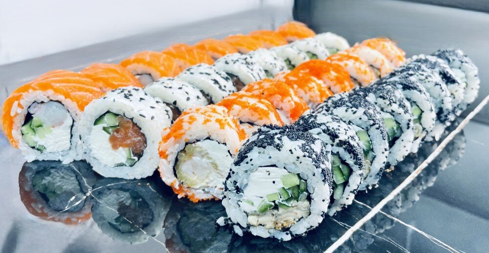 Филадельфия в кунжуте Филадельфия снежный краб С креветкой в темпуре Калифорния с угрем