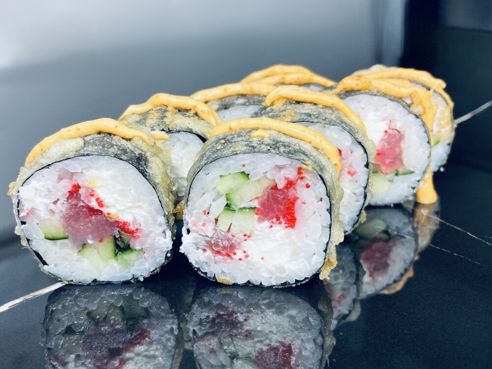 рис,сыр,тунец,огурец,масаго,соус спайси,нори