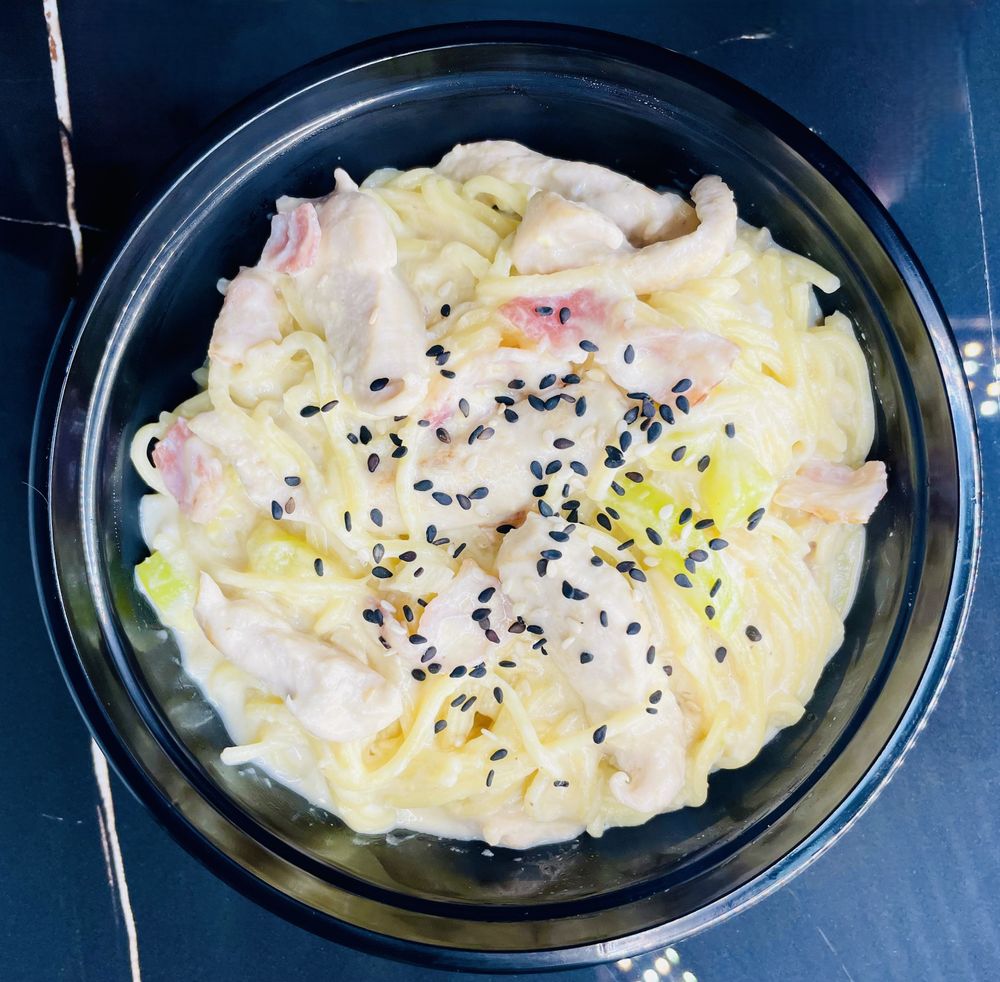 Курица , бекон , кабачок, сливочный соус, (лапша на выбор : соба , удон , яичная , фунчоза)